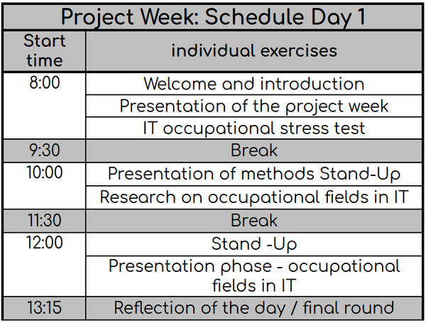 After the first break, the self-determined learning unit on the topic of professions in IT begins.